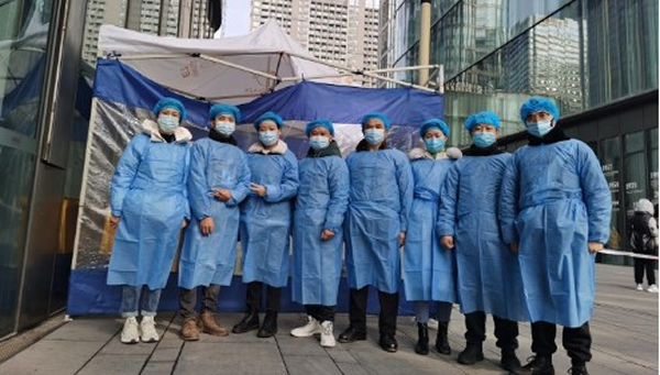 各位志愿者们换上蓝白色的防疫服,积极践行企业社会责任,大家鼓足干劲、坚定信心,有条不紊地开展服务工作。整个志愿团队配合默契、分工明确、行动迅速、工作细致,确保核酸检测工作有序、安全地进行。